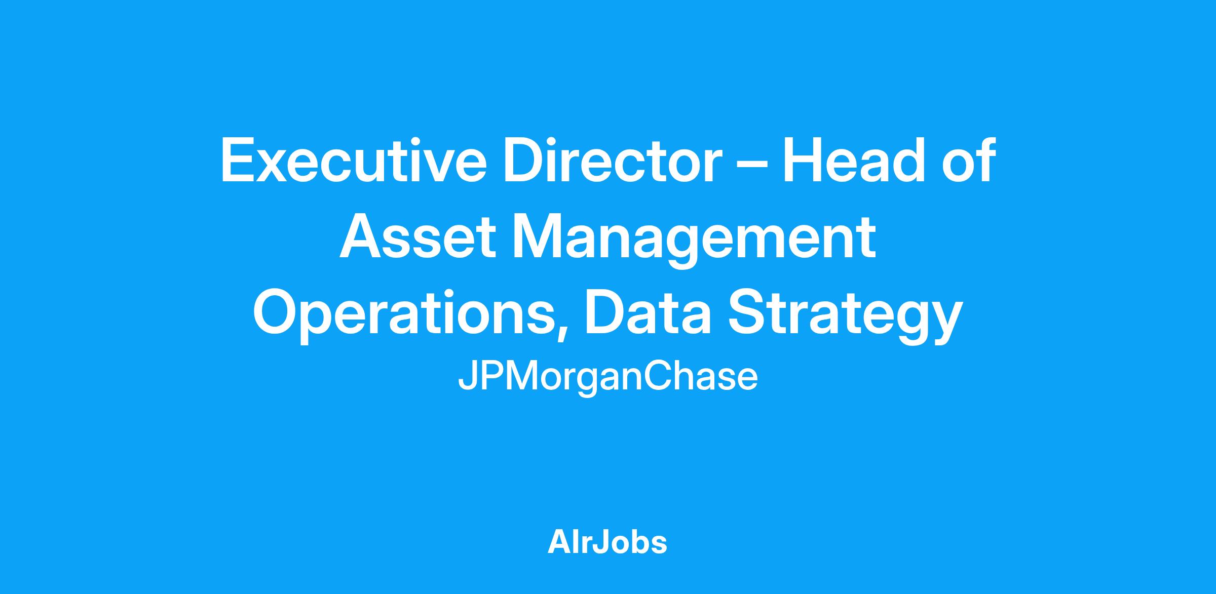 DescriptionShape the future of Asset Management with visionary data leadership. As the Executive Director and Head of Asset Management (AM) Operations, Data Strategy, you’ll shape and execute a cutting-edge approach to data development, governance, and delivery—empowering business growth, operational excellence, and advanced analytics.